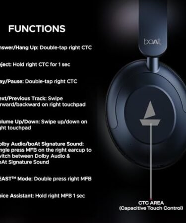 boAt New Launch Rockerz 650 Pro, Touch/Swipe Controls, Dolby Audio, 80Hrs Battery, 2Mics ENx, Fast Charge, App Support, Dual Pair, Bluetooth Over Ear Headphones with Mic (Iris Black)