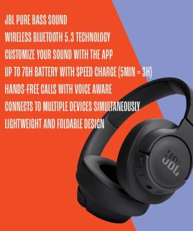 JBL Tune 720BT Wireless Over Ear Headphones with Mic, Pure Bass Sound, Upto 76 Hrs Playtime, Speedcharge, Dual Pairing, Customizable Bass with Headphones App, Lightweight, Bluetooth 5.3 (Blue)