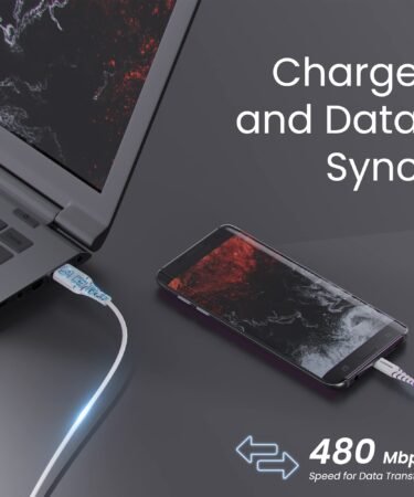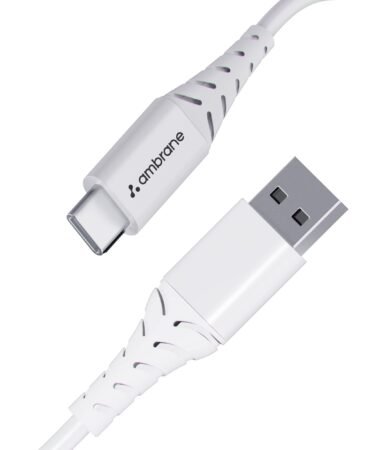 Ambrane 60W / 3A Fast Charging Output Cable with Type-C USB Cable to USB for Mobile, Neckband, True Wireless Earphone Charging, 480mbps Data Sync Speed, 1m Length (ACT – AZ10, White)