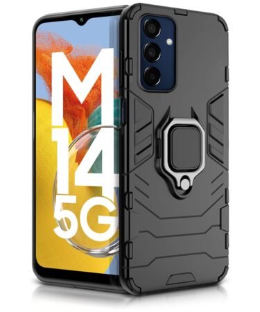 WOW IMAGINE Shock Proof Back Case Mobile Cover for Samsung Galaxy M14 5G | Back Cover Case (Tough Armor | Hybrid PC + TPU | Ring Holder & in-Built Kickstand | Black)