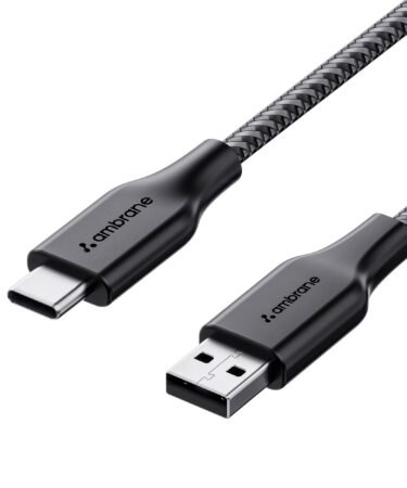 Ambrane Unbreakable 3A Fast Charging 1.5m Braided Type C Cable for Smartphones, Tablets & other Type C devices, 480Mbps Data Sync, Quick Charge 3.0 (RCT15A, Black)