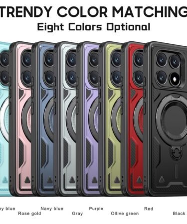 Glaslux Bumper Armor Shockpoof Case Compatible with Poco X6 Pro 5G, Magnetic Attraction Ring Holder Phone Cover and 360° Protection Rotate Stand Case Cover for Poco X6 Pro 5G – Black