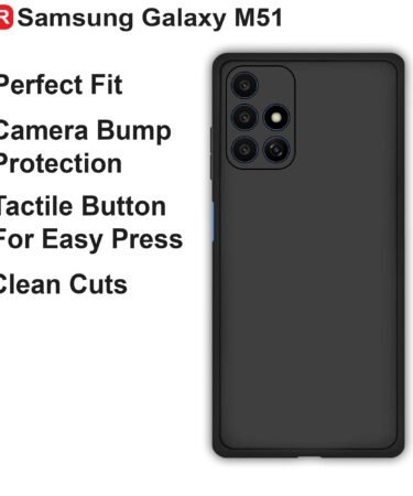 CEDO Back Cover for Samsung Galaxy M51 | Camera Bump Protection & Inner Velvet Fabric Lining | Ultra Slim Matte Soft Rubberised Case Cover (Black)
