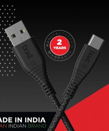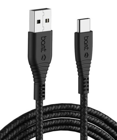 boAt Type C A325/A320 Tangle-Free, Sturdy Type C Cable, Usb Cablewith 3A Rapid Charging & 480 Mbps Data Transmission Speed, Compatible With Smartphones & Tablets 1.5Meter (Black)