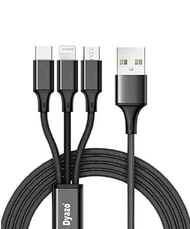 DYAZO 2.4 Amp 1 Meter Nylon Braided 3 In 1 Mobile Charging Usb Cable Compatible For All Smartphone, Iphones And Type C Devices,(Black)