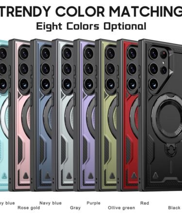 Glaslux Bumper Shockpoof Case Compatible with Samsung Galaxy S22 Ultra, Magnetic Attraction Ring Holder Phone Cover and 360° Protection Rotate Stand Case Cover for Samsung Galaxy S22 Ultra – Black