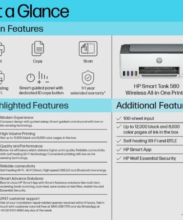 HP Smart Tank 530 All-in-one WiFi Colour Printer with ADF (Upto 18000 Black and 8000 Colour Pages Included in The Box). – Print, Scan & Copy for Office/Home