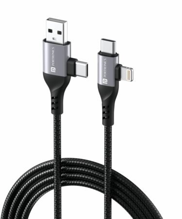 Portronics Konnect 4 IN 1 Unbreakable Nylon Braided Multi Functional Fast Charging Cable with Fast Data Transfer,Compatible with All Type C Android Smartphone & Lighting Device etc.(Black)