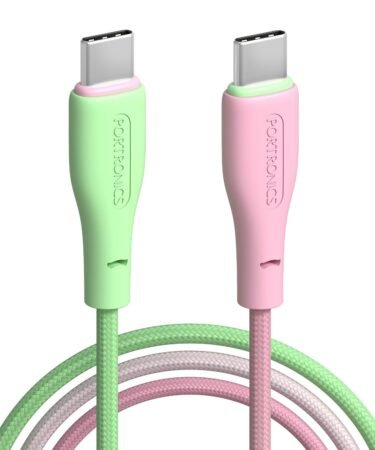 Portronics Hue x 60W Dual Tone Colour Type C Fast Charging Cable for Smartphones, Tablets,iPads, Laptops & Other Type C Devices, 480Mbps Data Sync, Premium Braided Cable (Green+Pink)