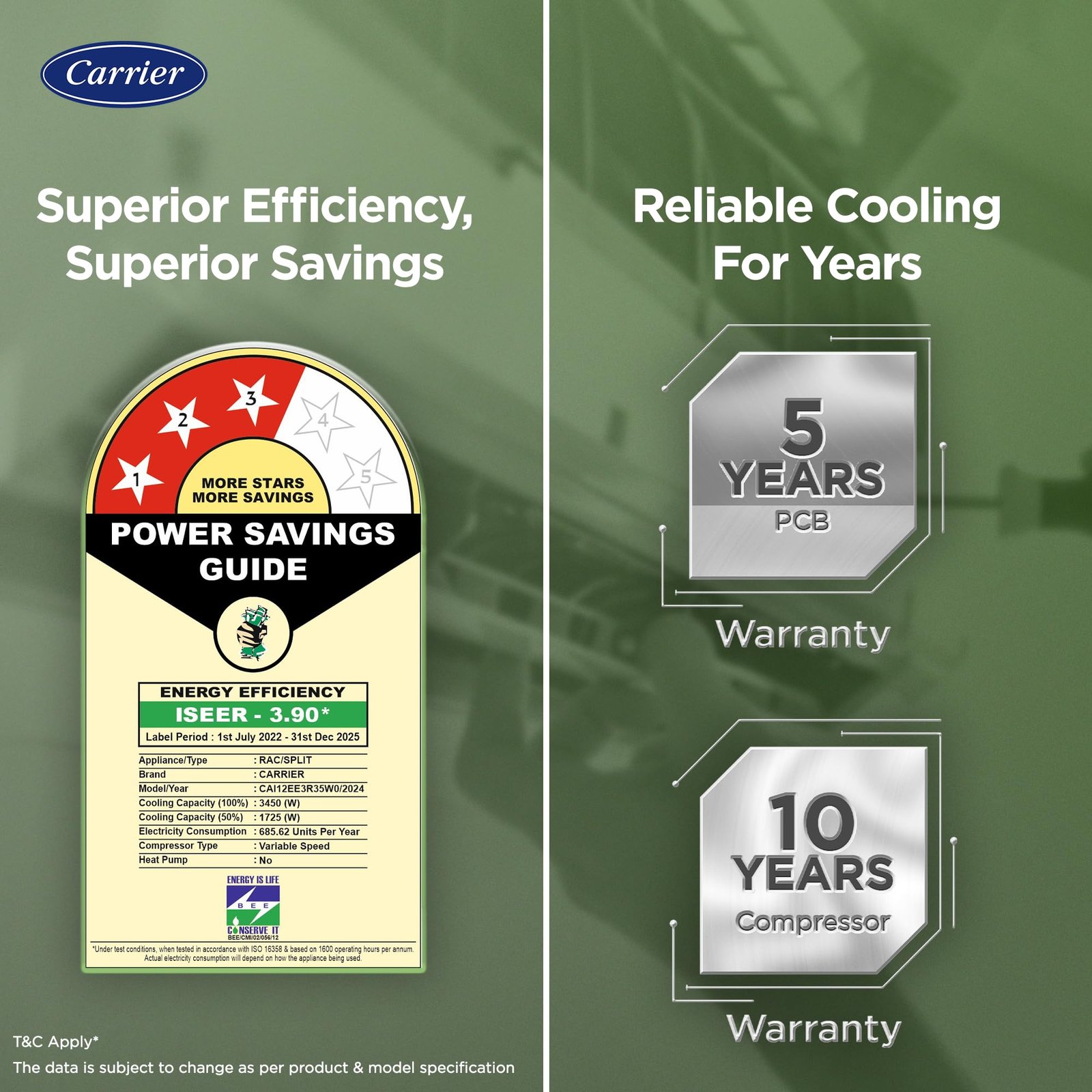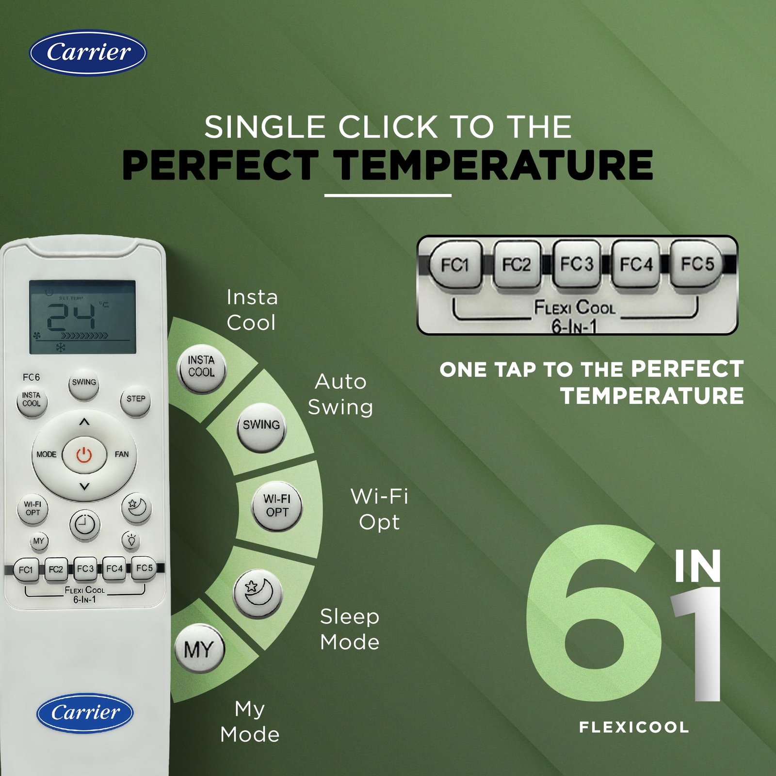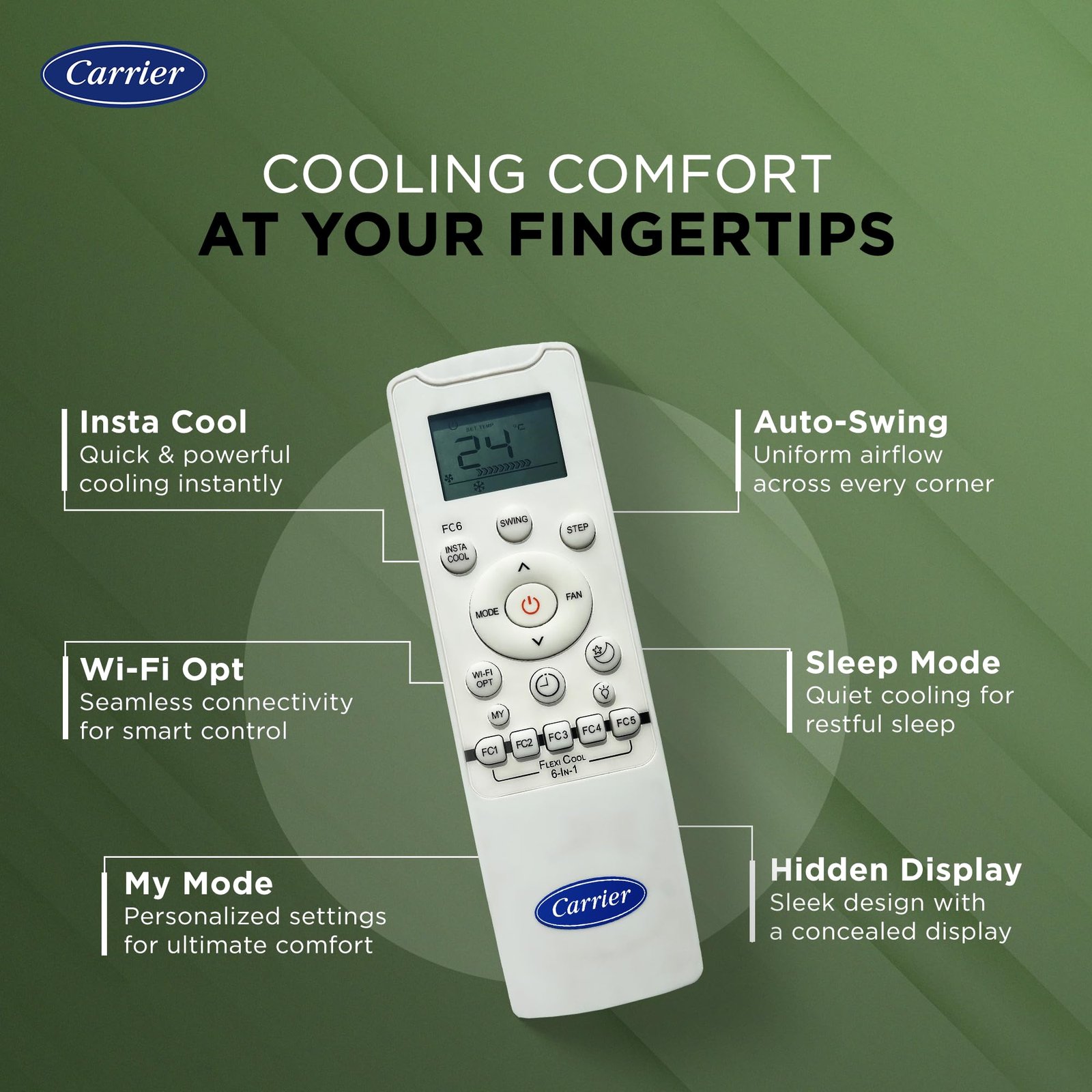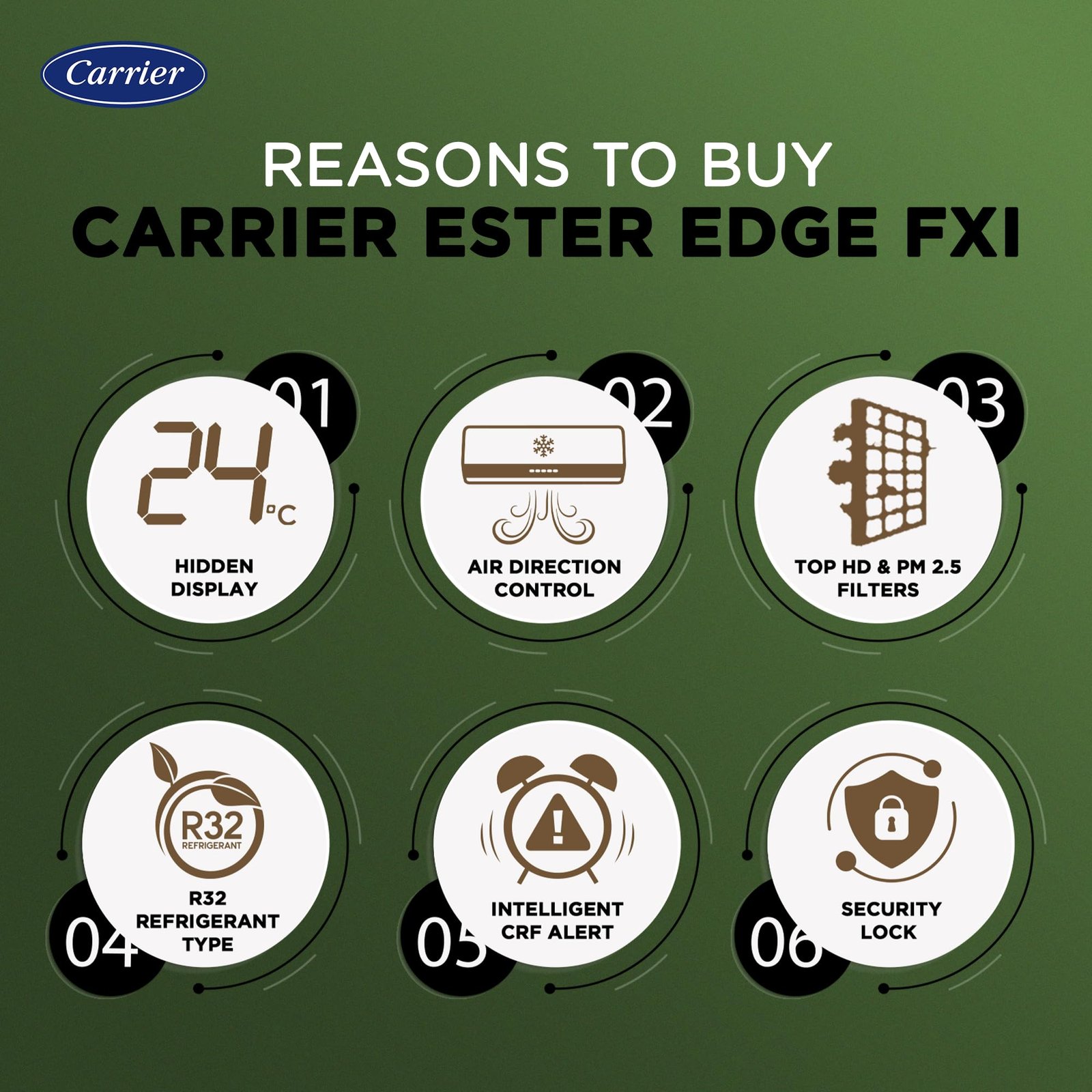 Carrier 1 Ton 3 Star Wi-Fi Smart Flexicool Inverter Split AC (Copper, Convertible 6-in-1 Cooling,Smart Energy Display,HD & PM 2.5 Filter, ESTER EDGE FXi (Wi-Fi), CAI12EE3R35W0,White)