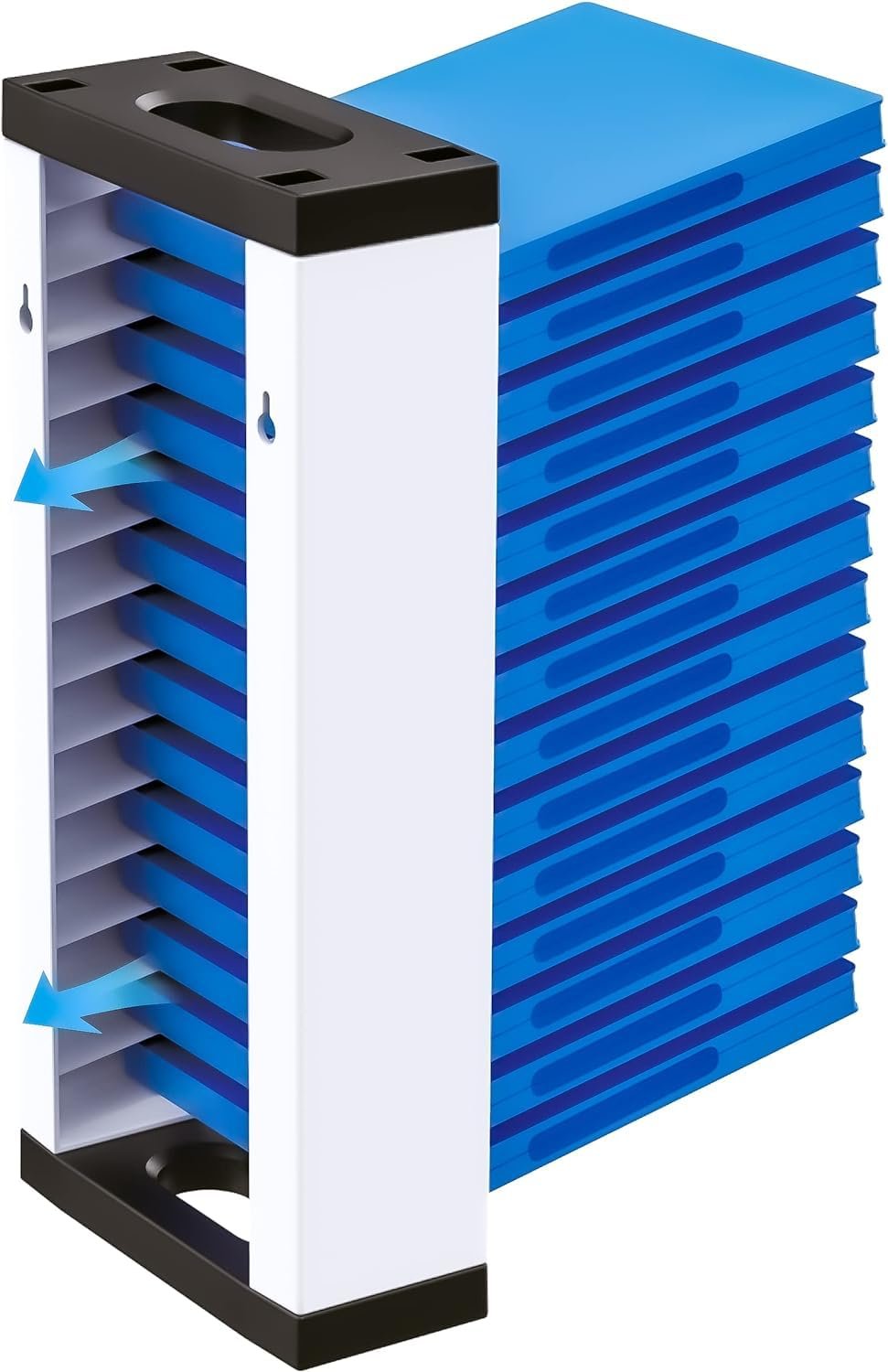 - The video game stand is made of sturdy ABS plastic and includes all necessary wall plugs and screws to mount the video game holder tower on the wall. The ideal Playstation game storage solution.
