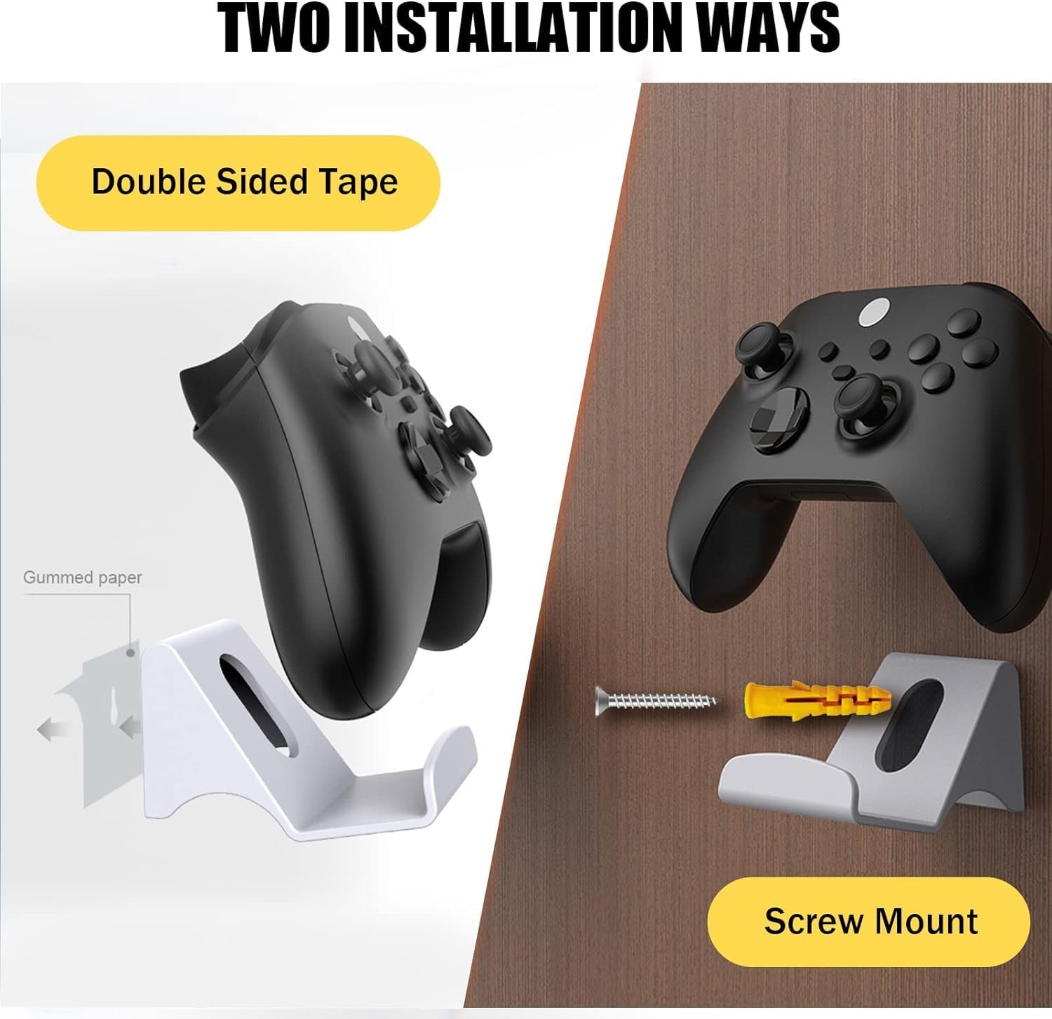 - The video games organizer is designed to be mounted on the wall. The controller wall mounts can be fixed with adhesive tape or screws. Drill and 7mm drill bit required for game tower installation.
