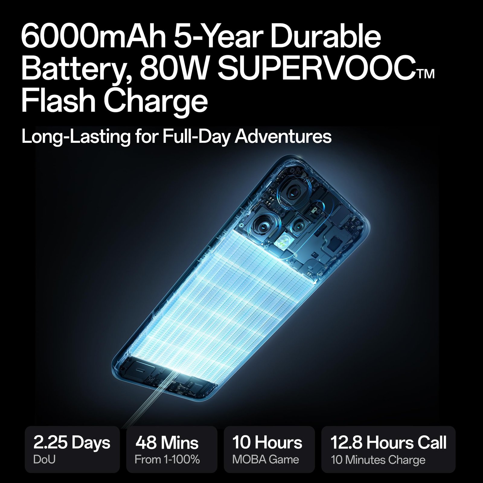 • 【Ultra-large Battery, Full-mark Endurance】:Stay powered through the day with a massive 6000mAh 5-Year Durable Battery, built for long-term performance. Refuel in minutes with 80W SUPERVOOC Flash Charge . Also, stay connected in any environment with the OPPO SignalBoost X1 Chip, delivering stronger, more stable network performance wherever life takes you.