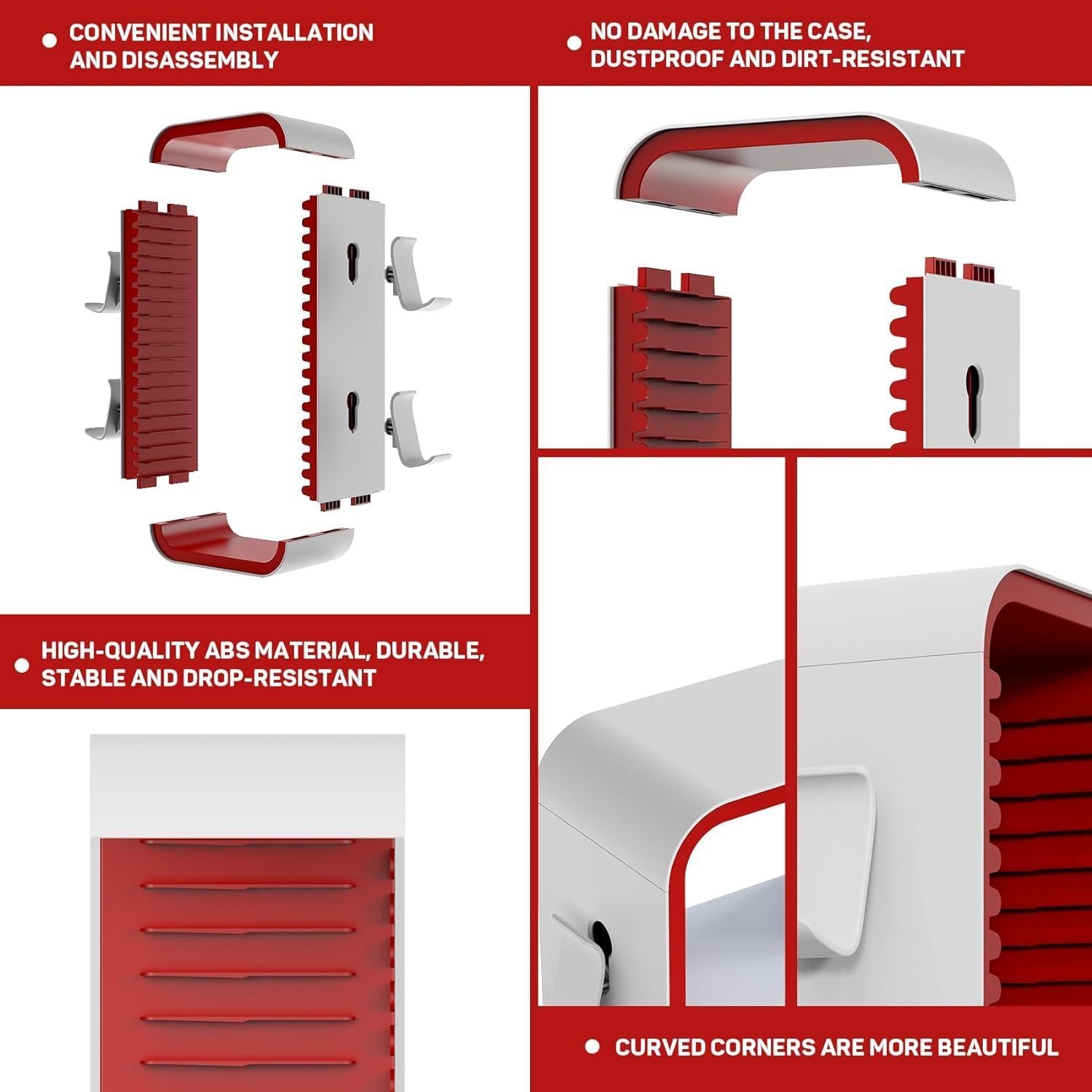 - 【Sturdy & Stable】Made of ABS material, hard, stable and very durable, non-slip pad design on the bottom means you don’t need to worry of the disks falling off anymore and this stand can hold 18 game card boxes & 4pc controller holder