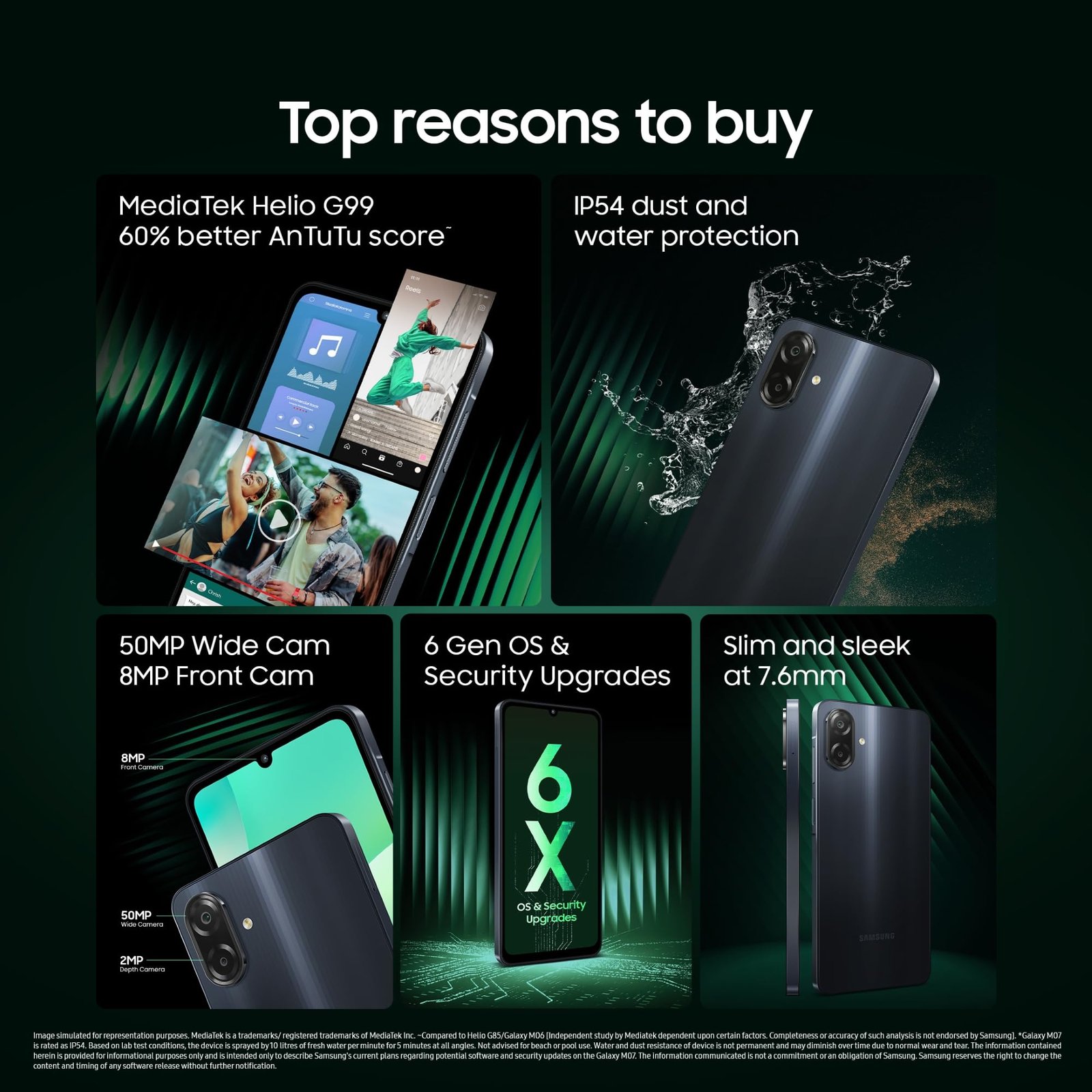 Samsung Galaxy M07 (Black, 4GB RAM, 64GB Storage) | MediaTek Helio G99 | IP54 Rating | 50MP Auto Focus Camera | 7.6mm Slim | 5000mAh Battery| 25W Fast Charging | 6 Gen of OS Upgrades | Without Charger